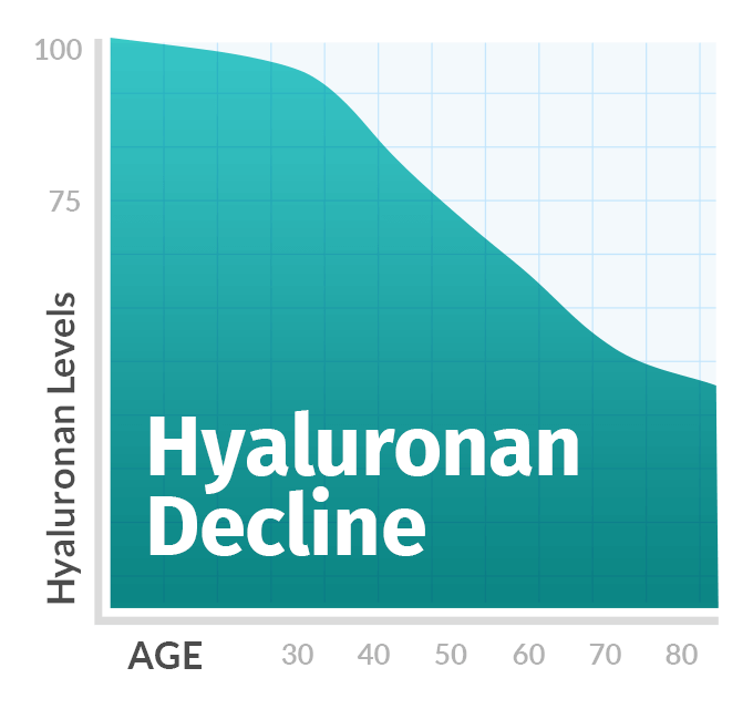The loss of Hyaluronan molecules from your synovial fluid, or “Joint Jelly”, as you age.